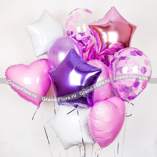 Стандартный: фольгированная звезда - 5шт., фольгированное сердце - 2шт., латексный шар - 3шт, латексный шар с конфетти - 3шт.